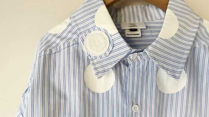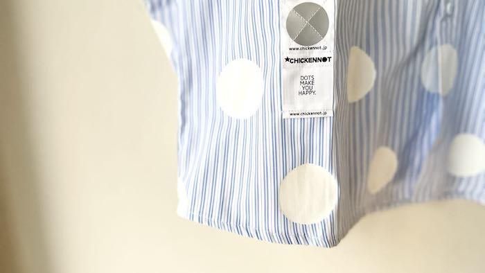 たとえばストライプ柄にドット柄をのせたグラフィックにして柄生地を製作し、それをシャツに仕立てれば CHICKENNOT がやってることを凌駕するんじゃないかって思うかもしれません。それはそうかもしれませんが、ボクがやってることは自己満足レベルで述べることを許されるなら、ボクの「作品」のほうが「なんとなく可愛い、気がする」はずです。ぱっと見では明確でないのに、潜在意識に訴えかけられるほどの存在感はあると、ボクはおもいます。それに賛同してくださる人がご注文くださるだけでいいです。じつはけっこう手間のかかる作業なので、何十枚も注文がしてしまうとボクもこまってしまうので、今回は M / L / XL の3サイズで9枚しかご注文できないようにしてあります。9枚でさえもヤバいです。5枚で十分。いや、3枚。