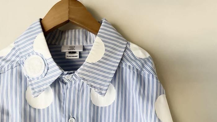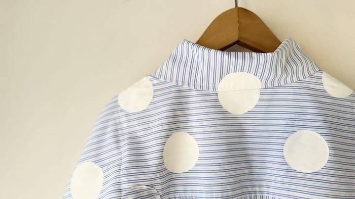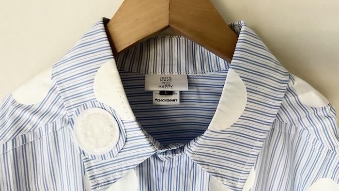 前身頃のところでもドットが揃えてあります。もちろん、ボタンをあけて着るときにもドットがしっかり抜かりなくペイントしてあるので安心。